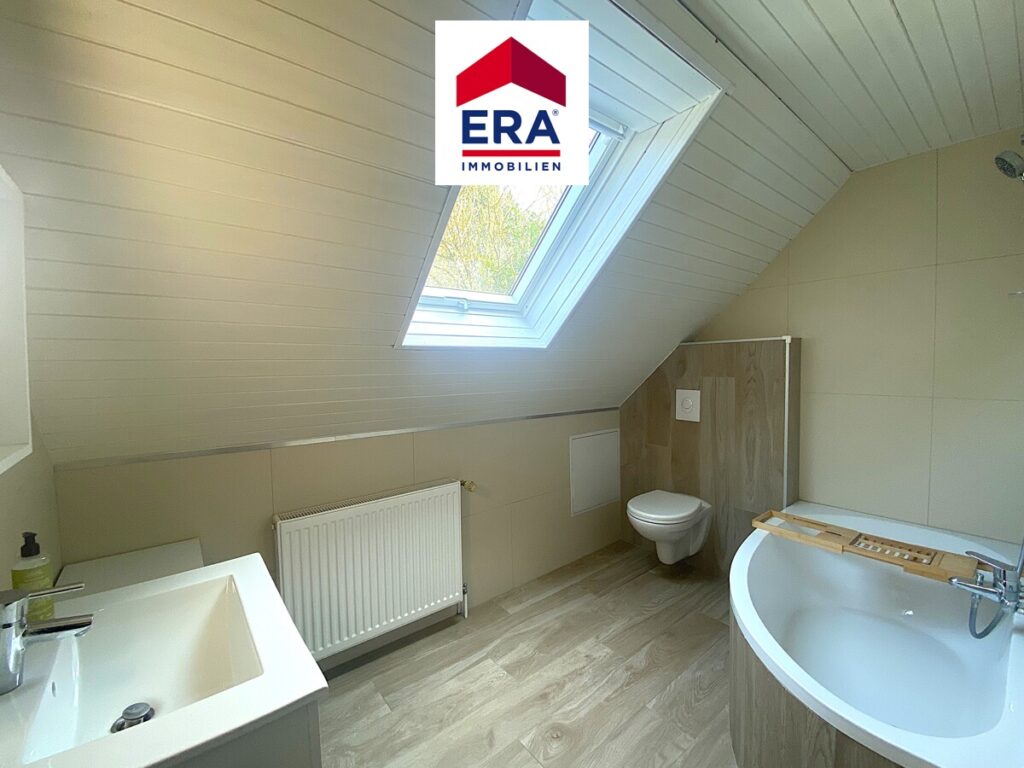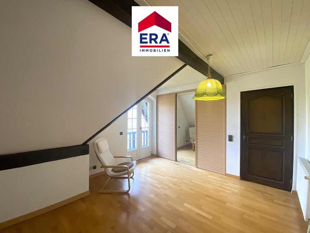 Im OG befinden sich ein zusätzliches, modernes Badezimmer mit Duschwanne, Waschbecken und WC, sowie 3 Schlafzimmer mit diversen Einbauschränken, eines davon mit Zugang zum Balkon.